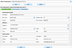 - Counterparty Management –Manage Accounts, Addresses, Contacts and Financial Details of all Counterparties credit departments at one place.